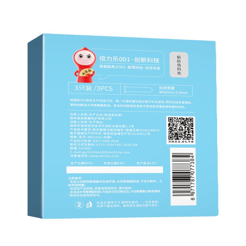 【避孕润滑】聚氨酯臻薄001 3只装 倍力乐